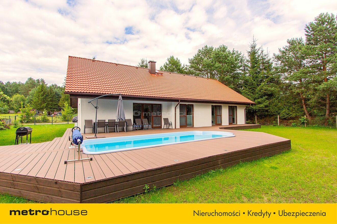 Na sprzedaż nowoczesny dom parterowy z basenem wybudowany 2025 roku, położony jedyne 100 metrów od jeziora Pile. Ten wyjątkowy dom o powierzchni całkowitej 143 m² oferuje pełne wyposażenie, funkcjonalny układ pomieszczeń oraz nowoczesny system ogrzewania pompą ciepła. Całość zbudowana z keramzytu, co gwarantuje wysoką izolacyjność oraz trwałość konstrukcji. Nieruchomość dysponuje też własnym basenem, co stanowi idealne rozwiązanie dla tych, którzy cenią sobie relaks i prywatność. Basen o podgrzewany i podświetlany z przeciwprądem o pow. 25 m2. może być wykorzystywany przez domowników przez cały rok.Wewnątrz domu, jasne i przestronne pomieszczenia rozplanowane są w sposób, który maksymalizuje wygodę mieszkania. Design i wyposażenie wnętrza zostały starannie dobrane, aby sprostać nawet najbardziej wymagającym gustom. Funkcjonalny rozkład pomieszczeń zapewnia komfort użytkowania domu na co dzień. Na powierzchnię mieszkalną składają się: duży salon z jadalnią i częścią kuchenną, 4 pokoje, 2 łazienki oraz pomieszczenie gospodarcze i korytarz z możliwością dostawienia schodów na poddasze które może być zaadoptowane na kolejne pomieszczenia. Nieruchomość sprzedawana jest z pełnym wyposażeniem.